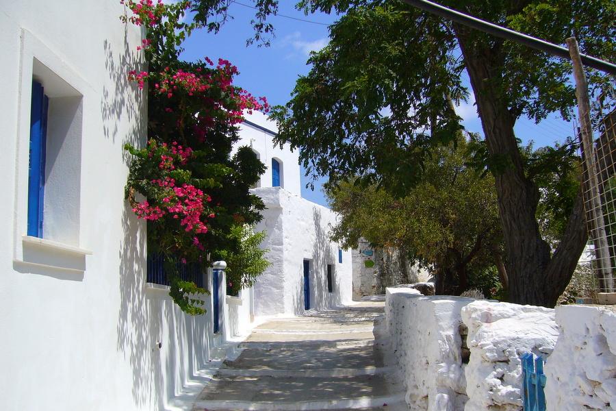 La capitale, Chora, est une ville préservée avec des maisons cubiques blanches, de belles églises et beaucoup de vieux moulins à vent. C’est un endroit calme avec des rues étroites, des places avec des arbres et quelques petites tavernes et boutiques de souvenirs.