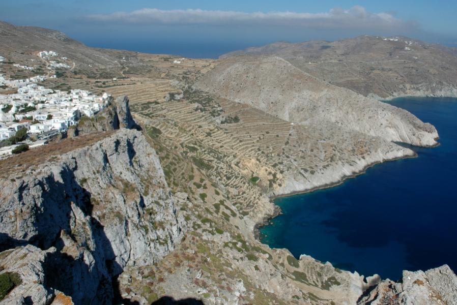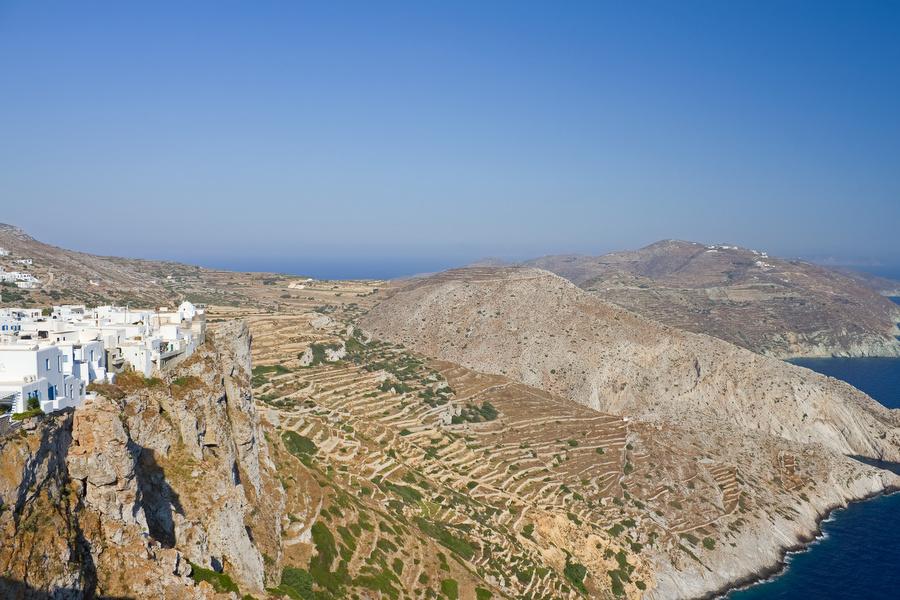 Etes-vous a la recherche d’une petite île sans trop de touristes ? Dans ce cas, Folegandros pourrait très bien être celle que vous cherchez. Folegandros est une petite île aride avec une superficie de 32 km2 et des montagnes escarpées. Le contraste entre l’île aride et les pittoresques maisons cubiques blanches est très séduisant. La capitale de l’île est un village typique des Cyclades avec trois places reliées par des petites rues blanches.