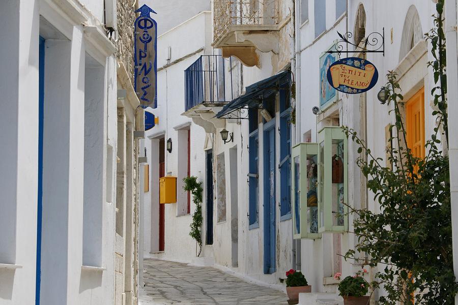 Tinos est une île typique des Cyclades avec des maisons cubiques blanches et des ruelles. Au port de Tinos on y trouve de nombreuses petites tavernes et des places pour un ouzo. Il y a de nombreux pigeonniers sur l’île. Ceux-ci sont construits avec imagination et grande maîtrise et se trouvent presque sur toute l’île. C’est les Vénitiens qui ont introduit les pigeons sur Tinos. On les retrouve principalement dans les champs près de la forteresse vénitienne au pied de la montagne Exoburgo.