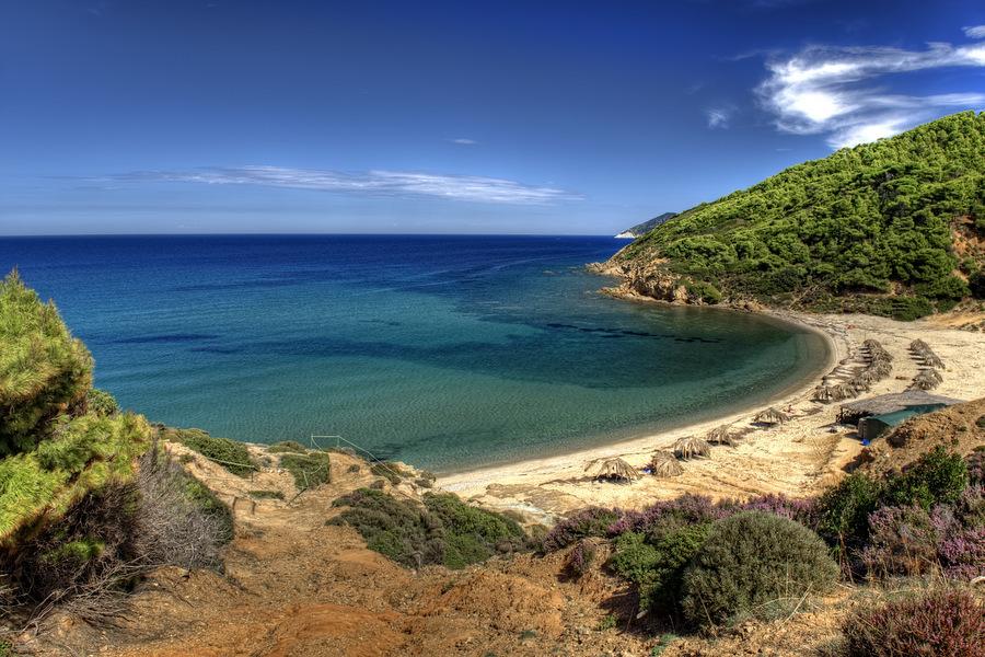 L’île de Skiathos fait partie des Sporades, elle est d’une superficie d’environ 61 km2. C’est une île verdâtre et vallonnée, avec de vastes forêts de pins et d’oliviers. La côte est rocheuse et sauvage, sur la côte sud et du sud-est, vous trouverez de belles baies avec des plages à sable fin.