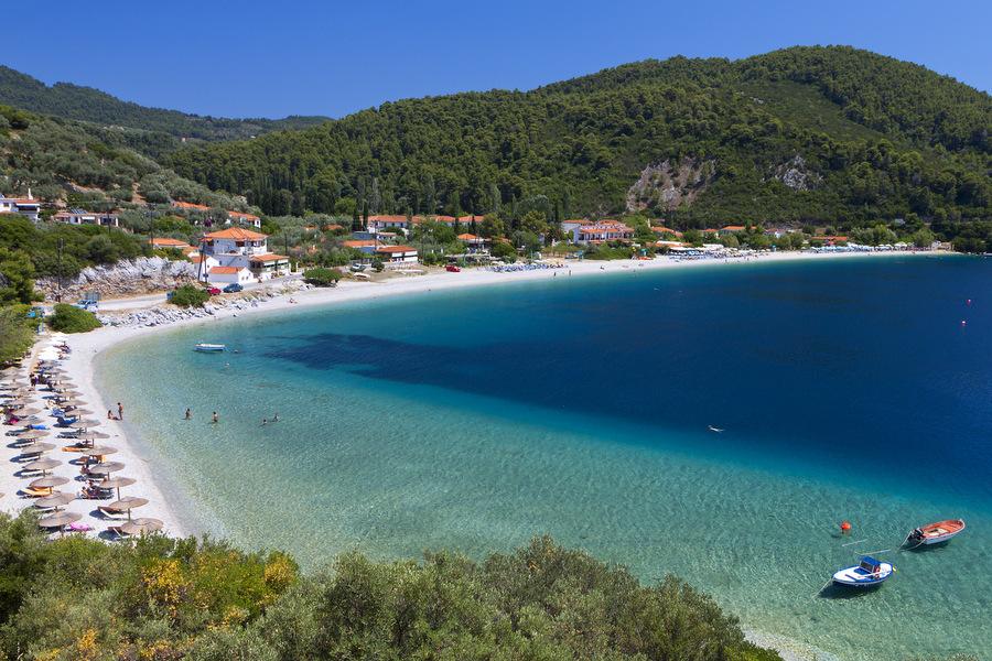 L’île de Skopelos est d’une superficie d’environ 96 km2 et se situe entre Skiathos et Alonissos. Skopelos est une île verdâtre, montagneuse avec une côte sauvage, des falaises abruptes et baies avec quelques belles plages entouré de pins et une eau claire bleue. Il y a jusqu'à 8 millions de pins sur cette île. C’est sans doute une des raisons que tourner sur cette île la majorité du film « Mama Mia » (2007) avec Pierce Brosnan et Meryl Streep. Ne manquez pas de visiter l’église tout près de l’eau où la scène du mariage a été prise.